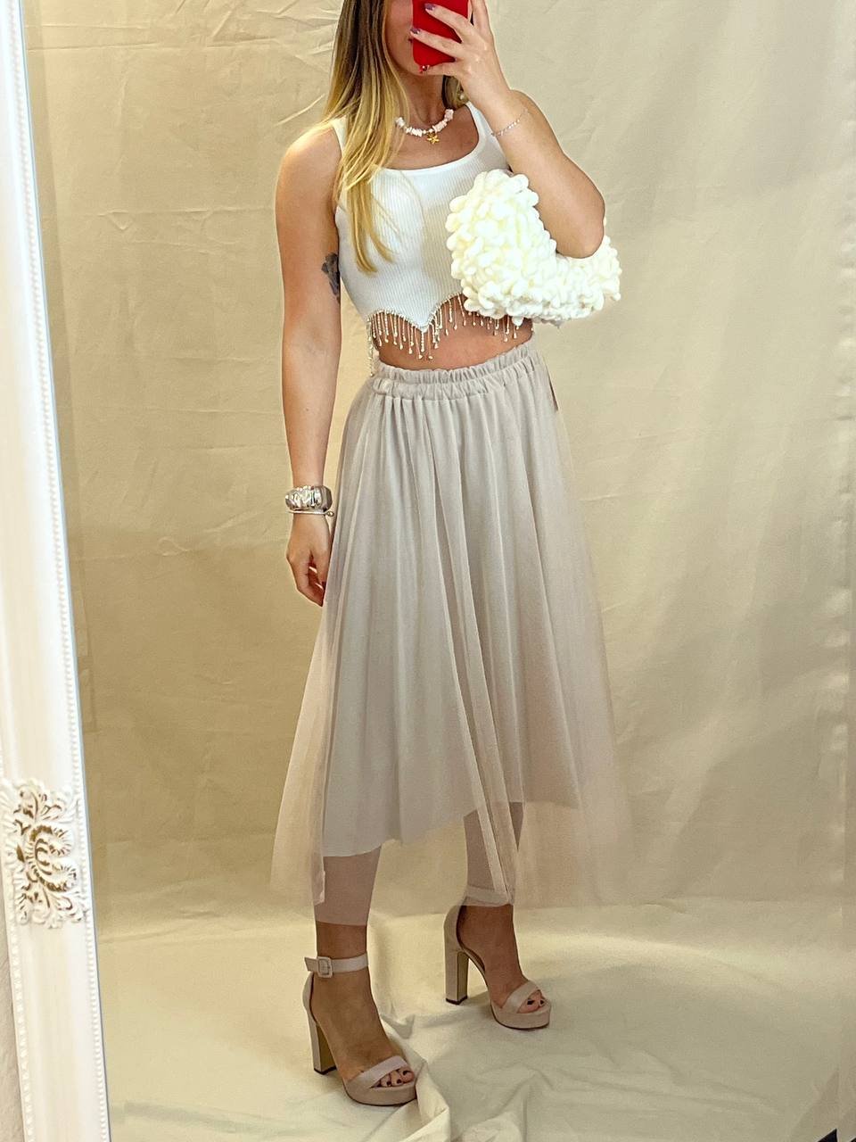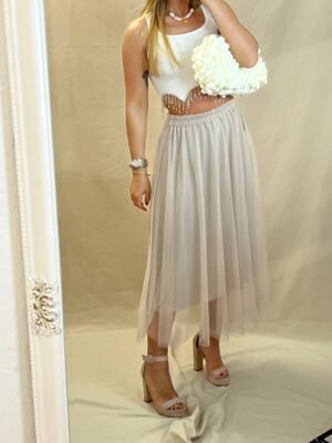 Αέρινη Τούλινη Φούστα Midi Μπέζ