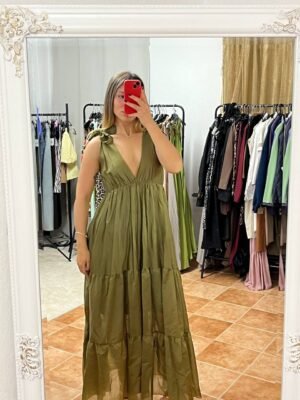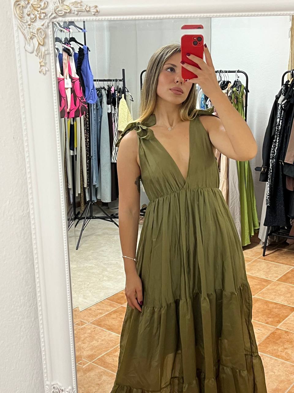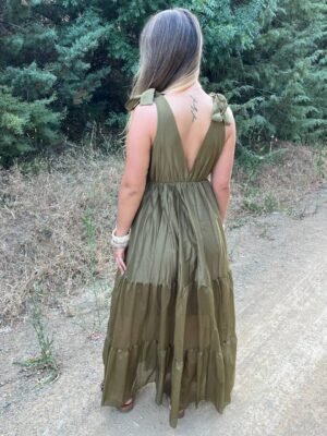 Αέρινο Λαδί Φόρεμα με Φιόγκους και Εσωτερική Επένδυση