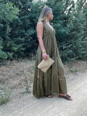 Ανανεώσε την καλοκαιρινή σου γκαρνταρόμπα με αυτό το αέρινο, άνετο μακρύ φόρεμα σε φυσική λαδί απόχρωση. Διαθέτει εσωτερική επένδυση για άνεση και κάλυψη, ενώ οι φιόγκοι στους ώμους προσθέτουν θηλυκή, ρομαντική. Έχει φαρδιά γραμμή που καλύπτει Small έως Large με φυσικό τρόπο και προσφέρει τέλεια κίνηση. Ιδανικό για όλες τις ώρες της ημέρας, city looks και γαμους, βαπτισεις.