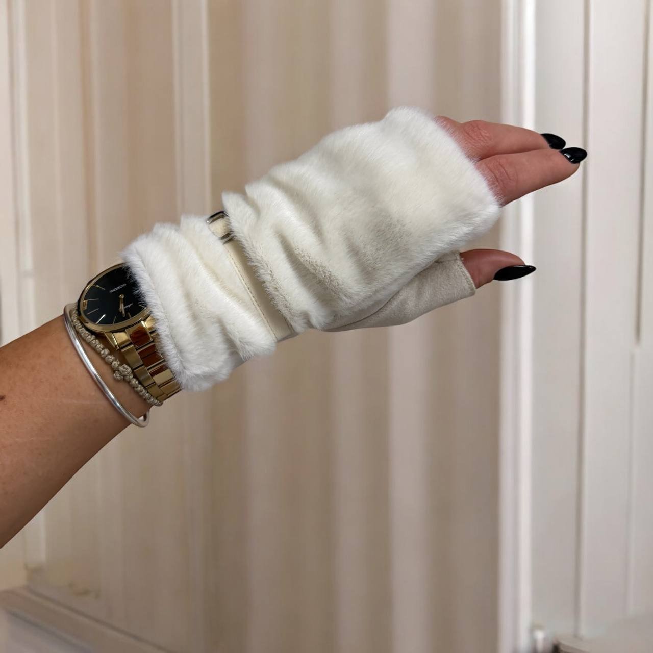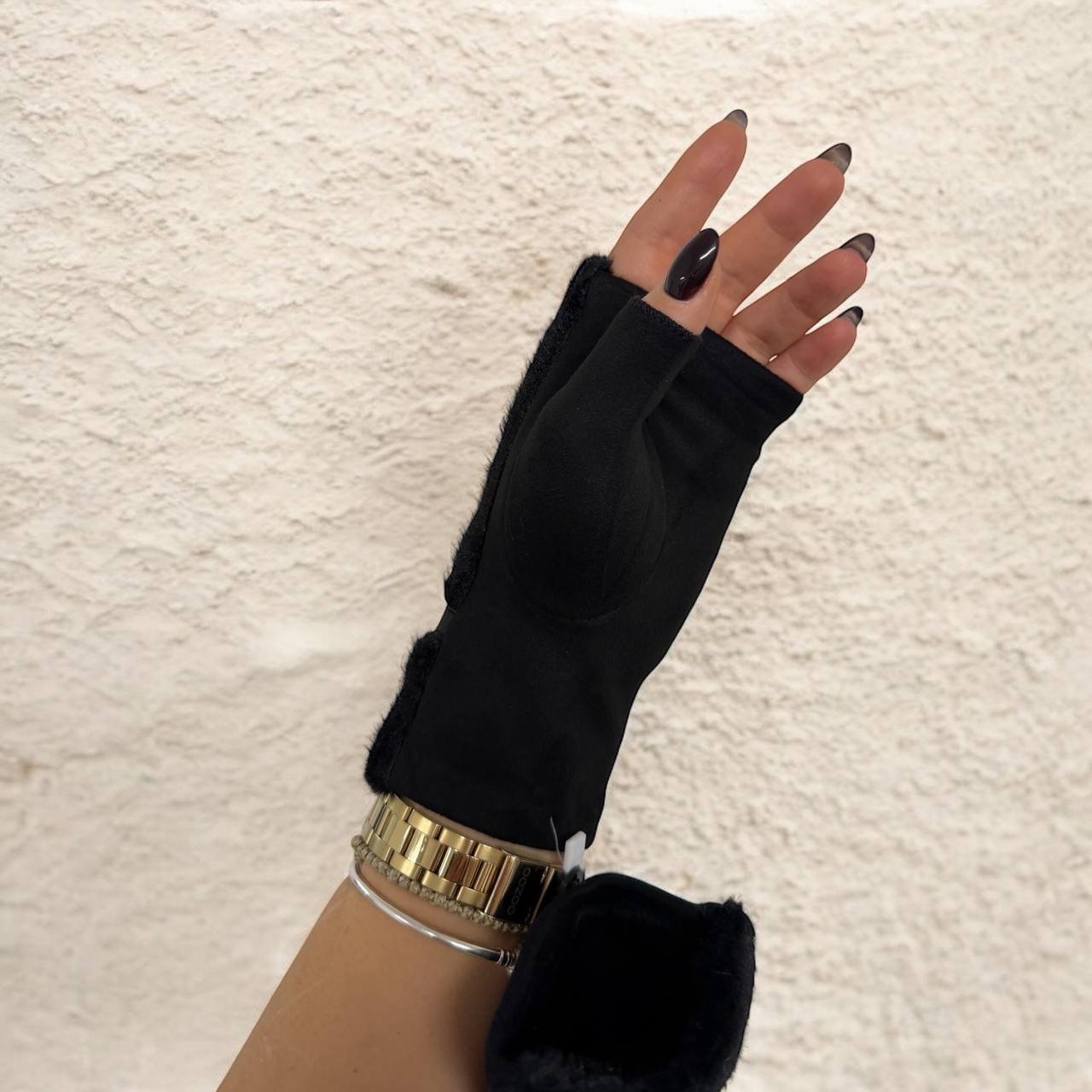 Κομψά και μοντέρνα γάντια τύπου half finger που συνδυάζουν άνεση και πολυτέλεια. Διαθέτουν επένδυση από απαλή οικολογική γούνα, προσφέροντας ζεστασιά και εντυπωσιακή εμφάνιση.