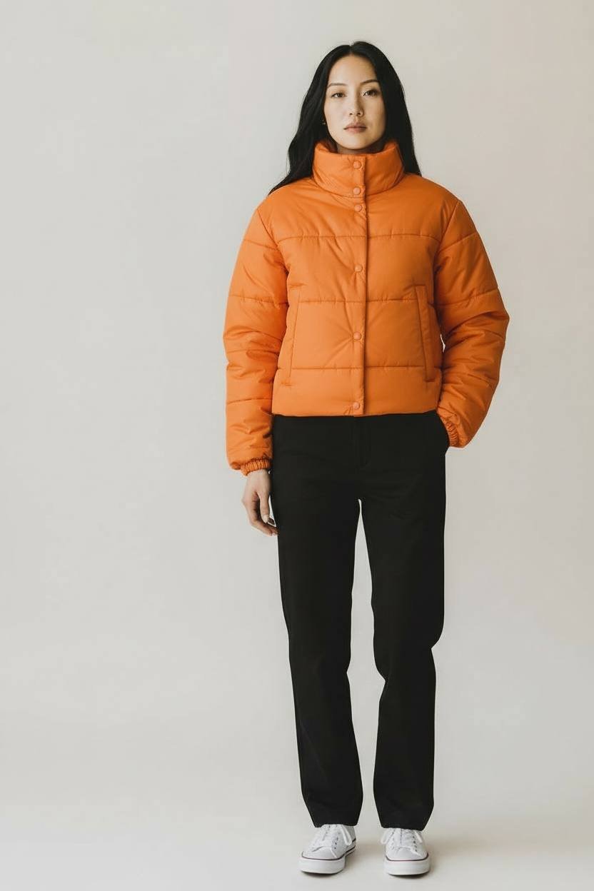Γυναικείο Κοντό Puffer Μπουφάν Πορτοκαλι