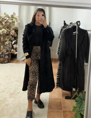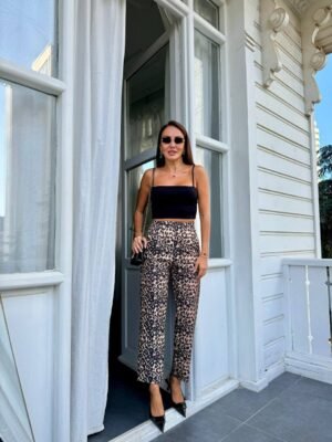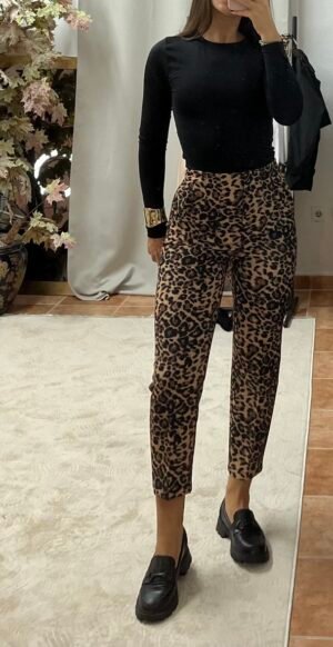 Αναδείξτε το τολμηρό σας στυλ με αυτό το εκπληκτικό λεοπάρ παντελόνι cigarette. Το ιδιαίτερο αυτό παντελόνι συνδυάζει τη μοντέρνα γραμμή με το έντονο λεοπάρ μοτίβο, δημιουργώντας μια εμφάνιση που μαγνητίζει τα βλέμματα.