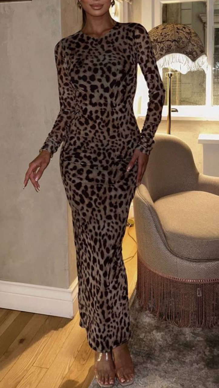 Αυτό το λεοπάρ μάξι φόρεμα συνδυάζει κομψότητα και δυναμισμό, αποτελώντας ιδανική επιλογή για ιδιαίτερες περιστάσεις. Ο σχεδιασμός του με μακριά μανίκια προσδίδει φινέτσα, ενώ το διακριτικό σκίσιμο πίσω στα πόδια προσθέτει μια θηλυκή και τολμηρή πινελιά. Κατασκευασμένο από υφάσματα υψηλής ποιότητας, προσφέρει εξαιρετική εφαρμογή και άνεση. Το λεοπάρ μοτίβο του δίνει έναν μοντέρνο χαρακτήρα που τραβά τα βλέμματα, ενώ το μάξι μήκος του αποπνέει διαχρονική κομψότητα.