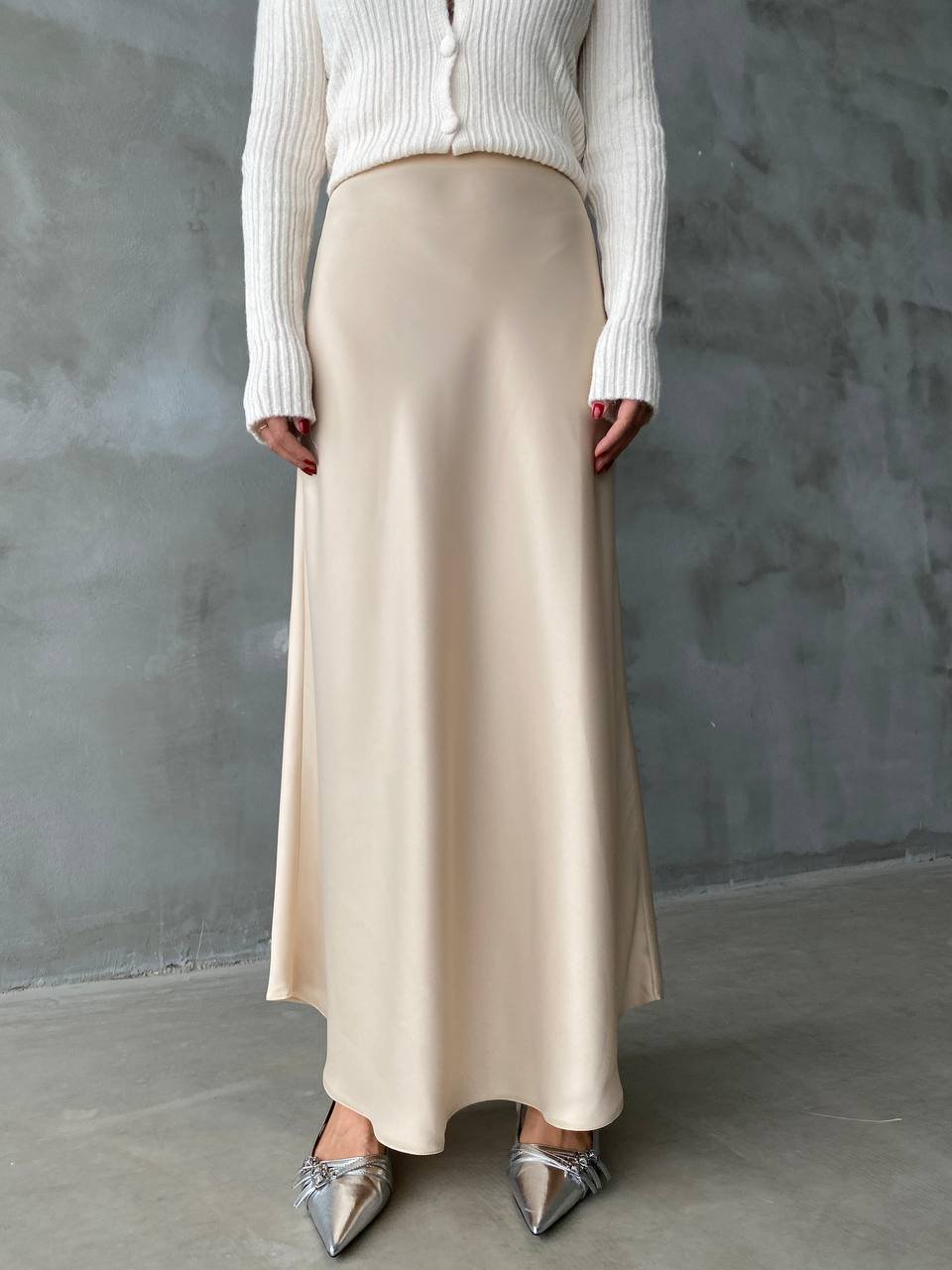 Αυτή η μπέζ σατέν φούστα αποτελεί την απόλυτη επιλογή για κομψότητα και ευελιξία. Κατασκευασμένη από σατέν υψηλής ποιότητας, χαρίζει μια απαλή, μεταξένια υφή και φυσική λάμψη. Διαθέτει κρυφό φερμουάρ στο πλάι για διακριτική εφαρμογή και ελαστική μέση που εξασφαλίζει άνεση και άψογη εφαρμογή. Το μαύρο χρώμα της την καθιστά ένα κλασικό κομμάτι που ταιριάζει εύκολα με κάθε στυλ.