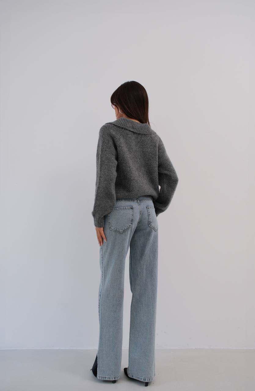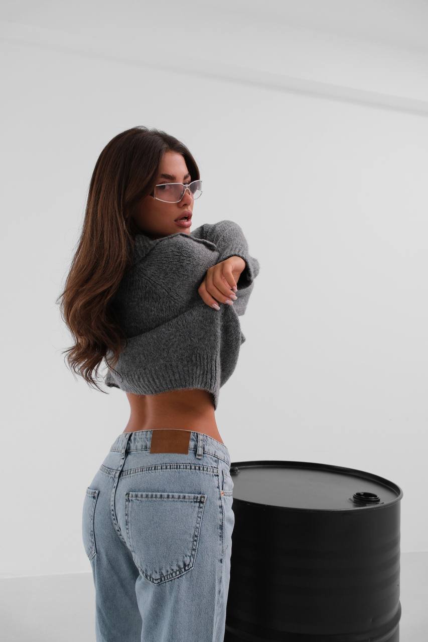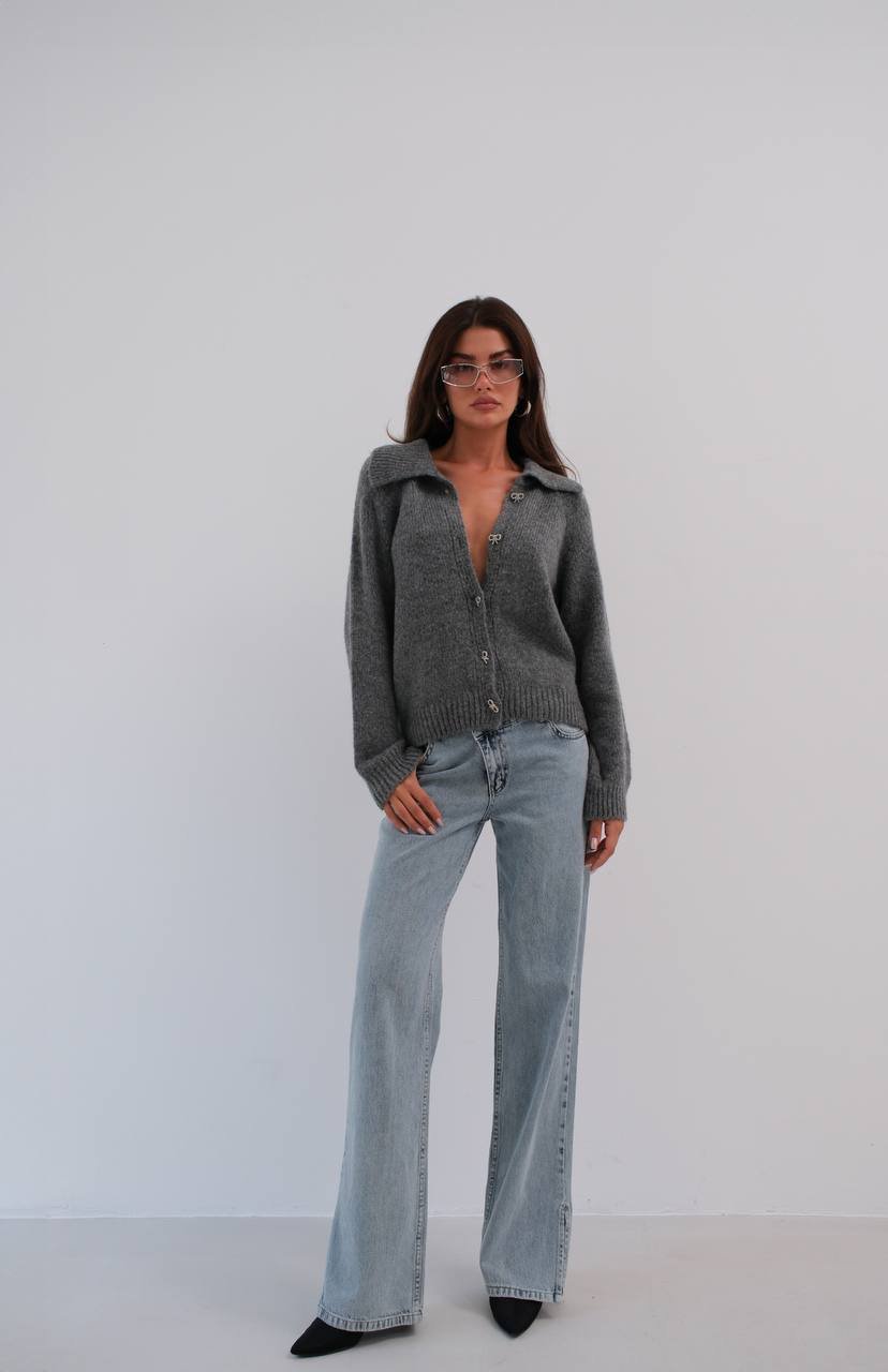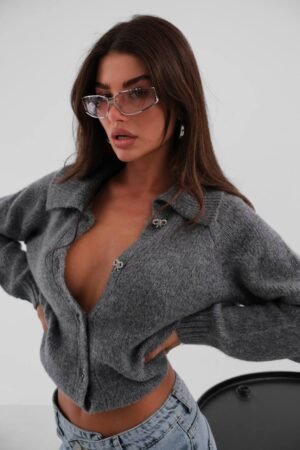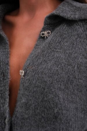 Πλεκτή Ζακέτα Γκρι με Διαμαντένια κουμπία