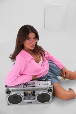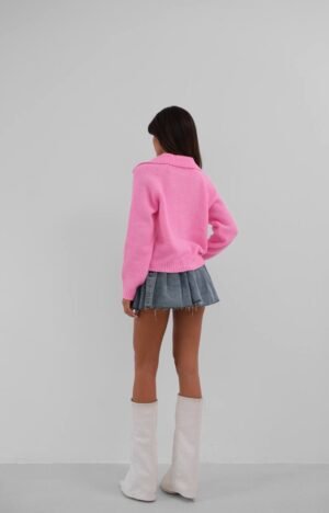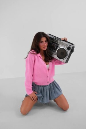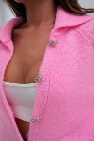 Πλεκτή Ζακέτα Ροζ με Διαμαντένια κουμπία