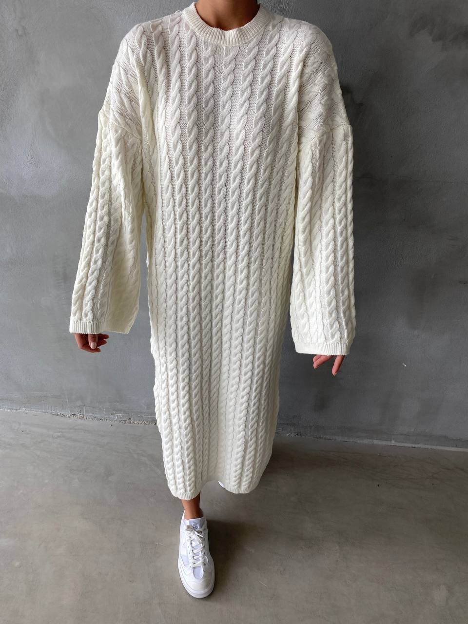 Αυτό το πλεκτό φόρεμα με μακρύ μανίκι αποτελεί την τέλεια επιλογή για κομψότητα και ζεστασιά. Κατασκευασμένο από μαλακό, υψηλής ποιότητας ύφασμα, αγκαλιάζει το σώμα με μια διακριτική εφαρμογή που προσφέρει άνεση και στυλ. Διαθέτει μίνιμαλ σχέδιο που μπορεί εύκολα να συνδυαστεί με μπότες ή γόβες, καθιστώντας το ιδανικό για casual εξόδους, επαγγελματικές συναντήσεις ή ακόμα και επίσημες περιστάσεις. Το διαχρονικό του στυλ και η πρακτικότητα του το καθιστούν απαραίτητο κομμάτι για τη χειμερινή γκαρνταρόμπα σας.