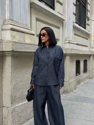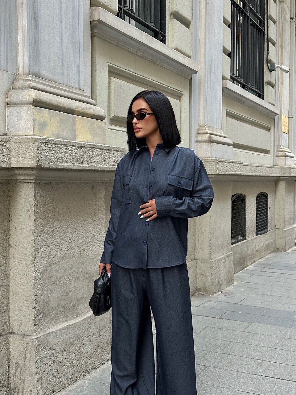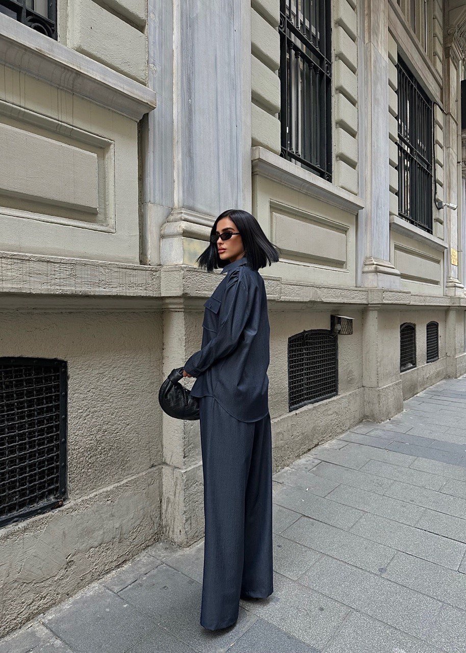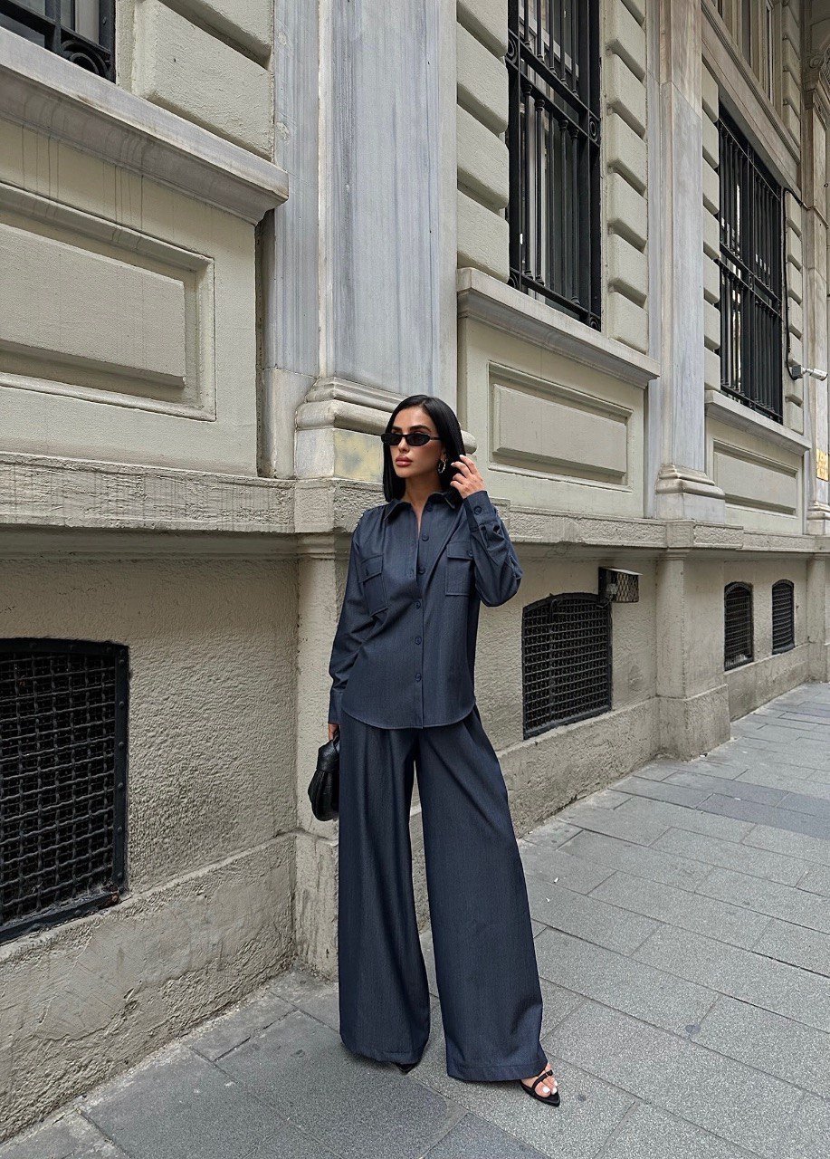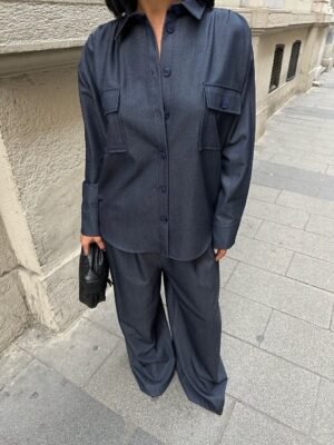 Αυτό το τζιν σετ αποτελεί την ιδανική επιλογή για άνεση και στυλ, με παντελόνι που διαθέτει ελαστική μέση και λάστιχο για τέλεια εφαρμογή. Η ίσια γραμμή και το άνοιγμα στο τελείωμα του παντελονιού προσφέρουν μια μοντέρνα και κομψή εμφάνιση. Είναι ιδανικό για το γραφείο, καθώς συνδυάζει άνεση με επαγγελματική εμφάνιση, ενώ μπορεί να φορεθεί και ως ξεχωριστό κομμάτι με άλλα ρούχα για πιο casual εμφανίσεις. Η εξαιρετική ποιότητα του υλικού εξασφαλίζει μακροχρόνια χρήση, καθιστώντας το μια πρακτική και στιλάτη επιλογή για καθημερινές εμφανίσεις.