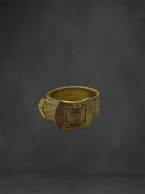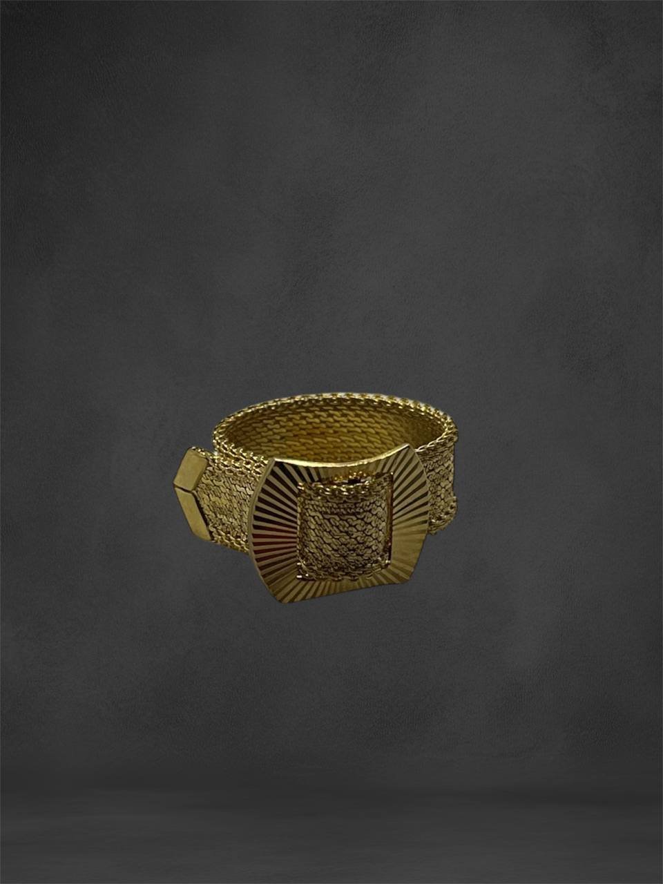 Μοναδικό ατσάλινο ρυθμιζόμενο δαχτυλίδι σε χρυσό χρώμα, με ανάγλυφο μοτίβο ήλιου στο κέντρο. Ιδανικό για να φωτίσει κάθε σου εμφάνιση με μια εκλεπτυσμένη πινελιά.