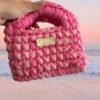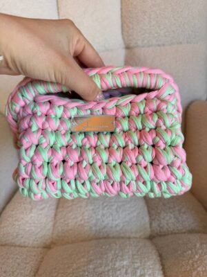 Χειροποίητη πλεκτή clutch τσάντα σε παιχνιδιάρικο συνδυασμό ροζ και μέντας, που δίνει μια φρέσκια και μοντέρνα πινελιά σε κάθε εμφάνιση. Το ιδιαίτερο σχέδιο και η chunky πλέξη την κάνουν να ξεχωρίζει, ενώ το μέγεθός της είναι ιδανικό για τα απαραίτητα της ημέρας ή της βραδινής εξόδου.