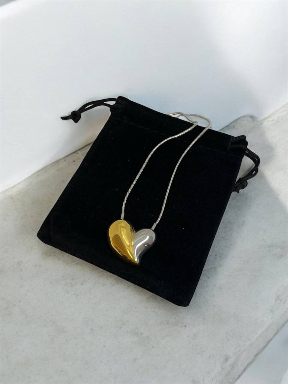 Μοντέρνο δίχρωμο κολιέ με καρδιά σε χρυσή και ασημένια απόχρωση. Ένα κομψό κόσμημα που συμβολίζει την ένωση και την αγάπη.