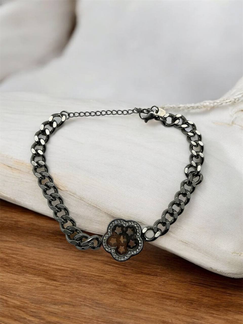 Ένα εντυπωσιακό βραχιόλι αλυσίδα με σχέδιο λουλουδιού, διακοσμημένο με στρας για μια λαμπερή και κομψή εμφάνιση. Ιδανικό για ρομαντικές και ιδιαίτερες περιστάσεις