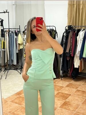 Golden Edge Pistachio – Φιστικί Σετ Στράπλες Μπλούζα & Παντελόνι Αλφα Γραμμής