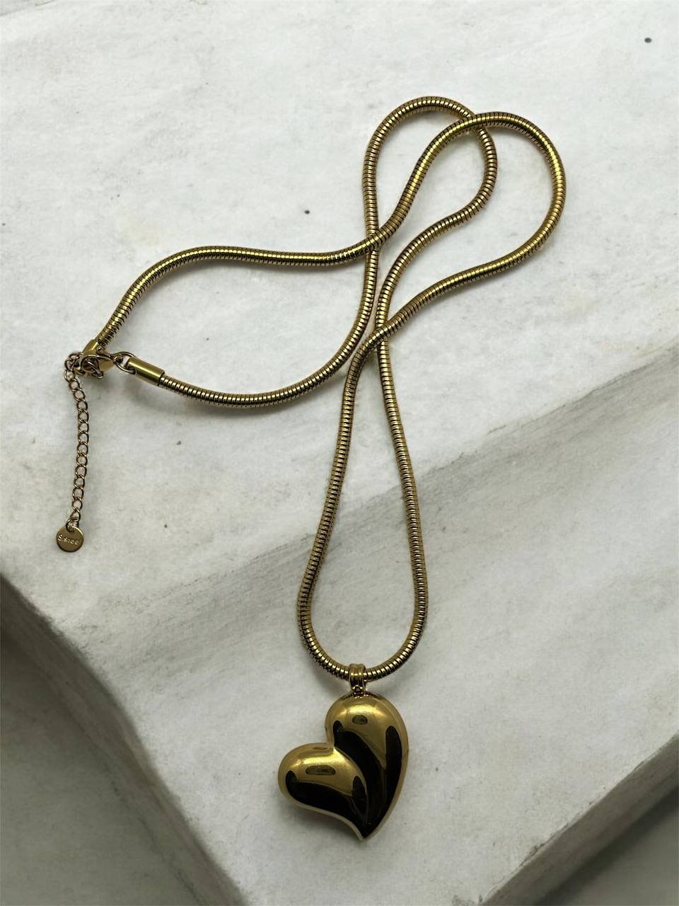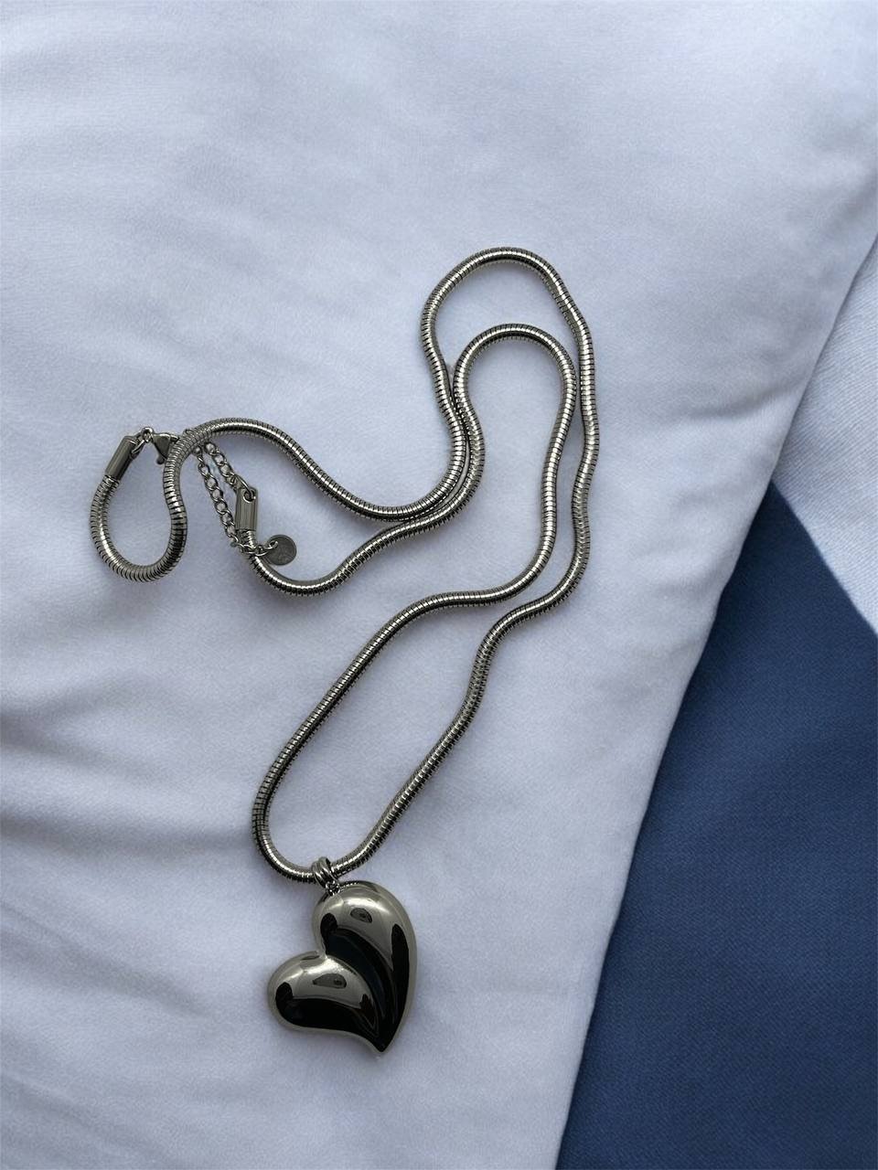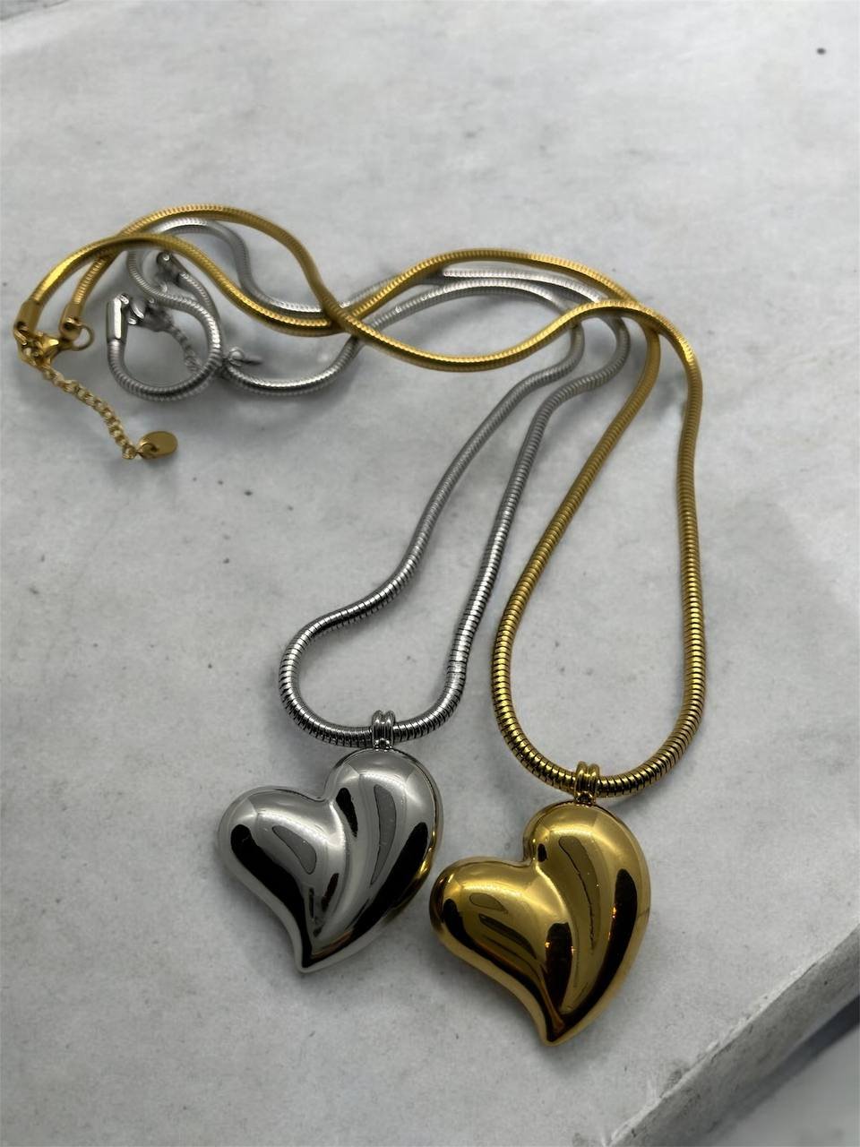 Αυτό το εντυπωσιακό κολιέ συνδυάζει ασημένιο και χρυσό ατσάλι για ένα μοντέρνο και κομψό αποτέλεσμα. Διαθέτει καρδιές και μακριά αλυσίδα, ιδανικό για κάθε περίσταση