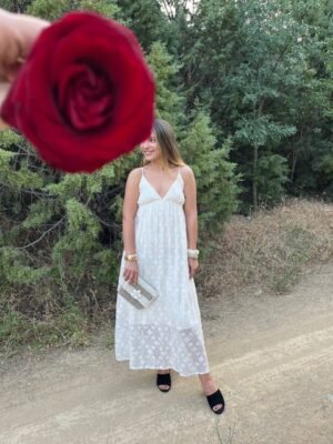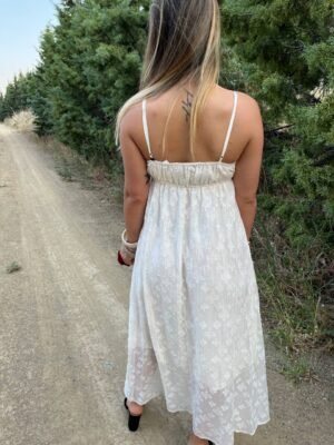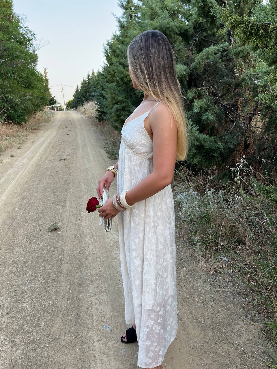 Αέρινο, ρομαντικό και μοναδικό, το φόρεμα Lumina ξεχωρίζει με τη διάφανη λουλουδάτη δαντέλα, την λευκή παγιέτα σε σημεία και τη βαθιά V λαιμόκοψη. Διαθέτει ρυθμιζόμενες τιράντες, εσωτερική επένδυση που προσφέρει πλήρη κάλυψη (δεν διαφανίζει καθόλου), και ασύμμετρο τελείωμα που χαρίζει ιδιαίτερη κίνηση. Κυκλοφορεί σε 2 μεγέθη: S/M και M/L. Το χρώμα του είναι κρεμ, με elegant ύφος, ιδανικό για γάμους, βαπτίσεις, ή επίσημες εμφανίσεις.