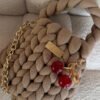 Διαθέτει σταθερή, πλεγμένη χειρολαβή χειροποίητη με πέρλες για άνετο κράτημα στο χέρι. Οι χρυσές λεπτομέρειες και το διακριτικό μεταλλικό λογότυπο προσθέτουν μία κομψή πινελιά.