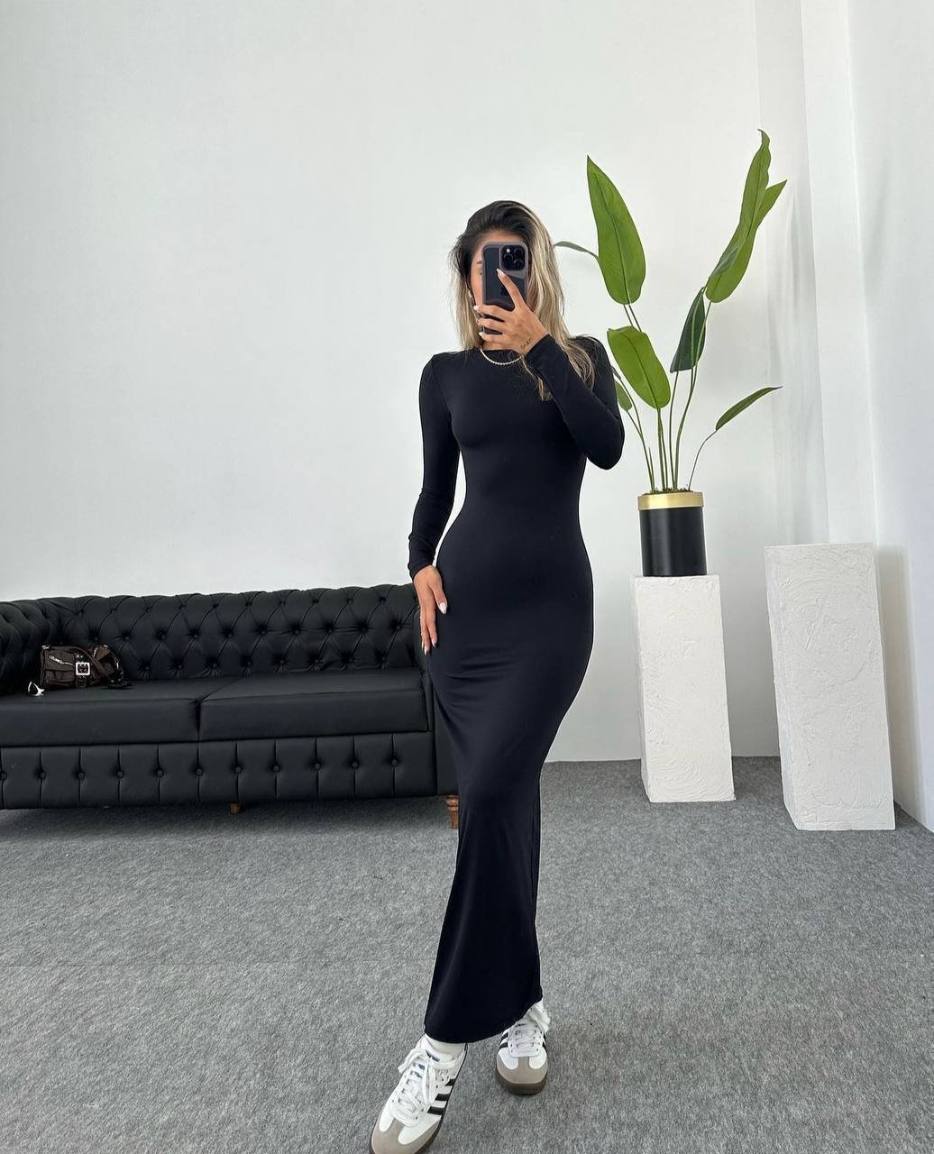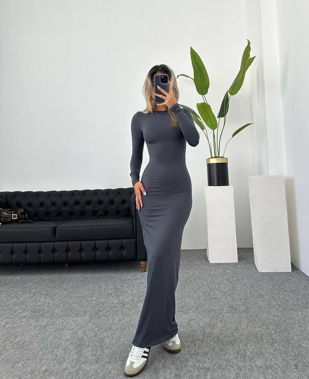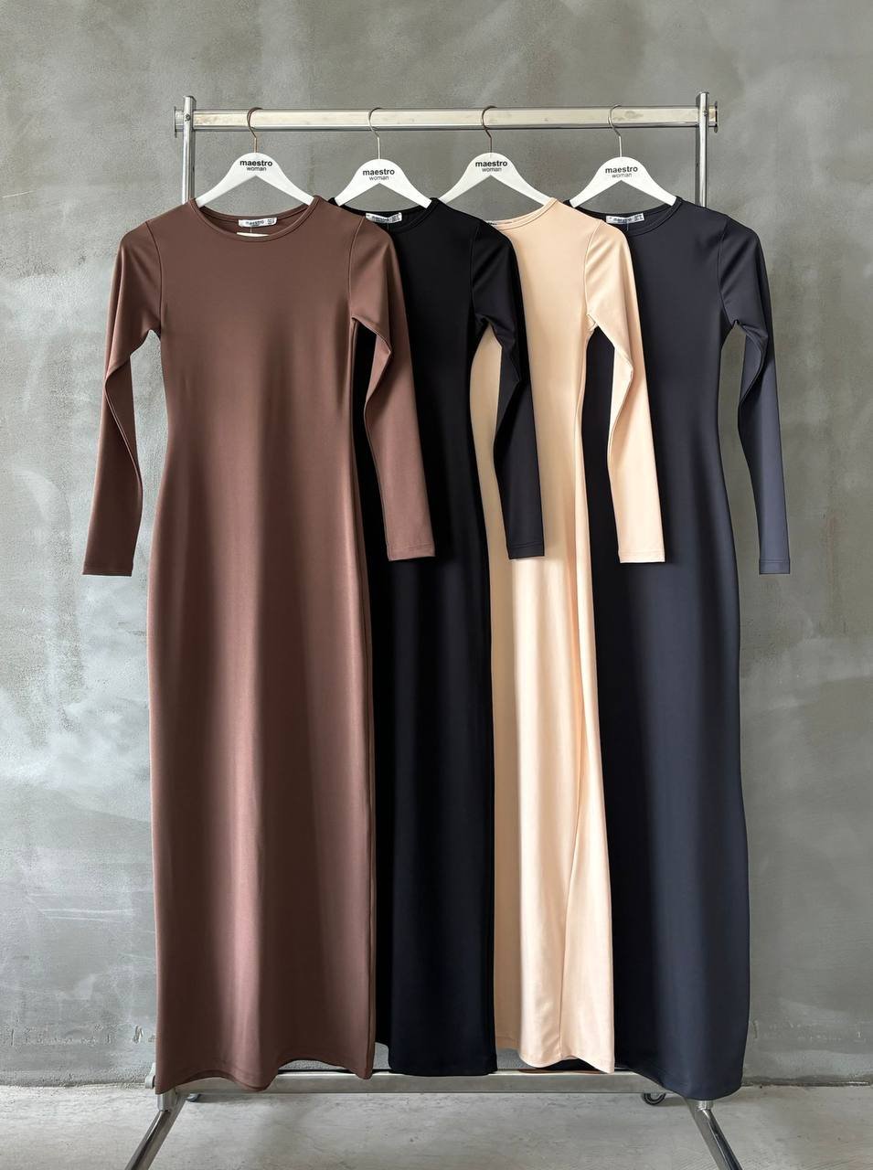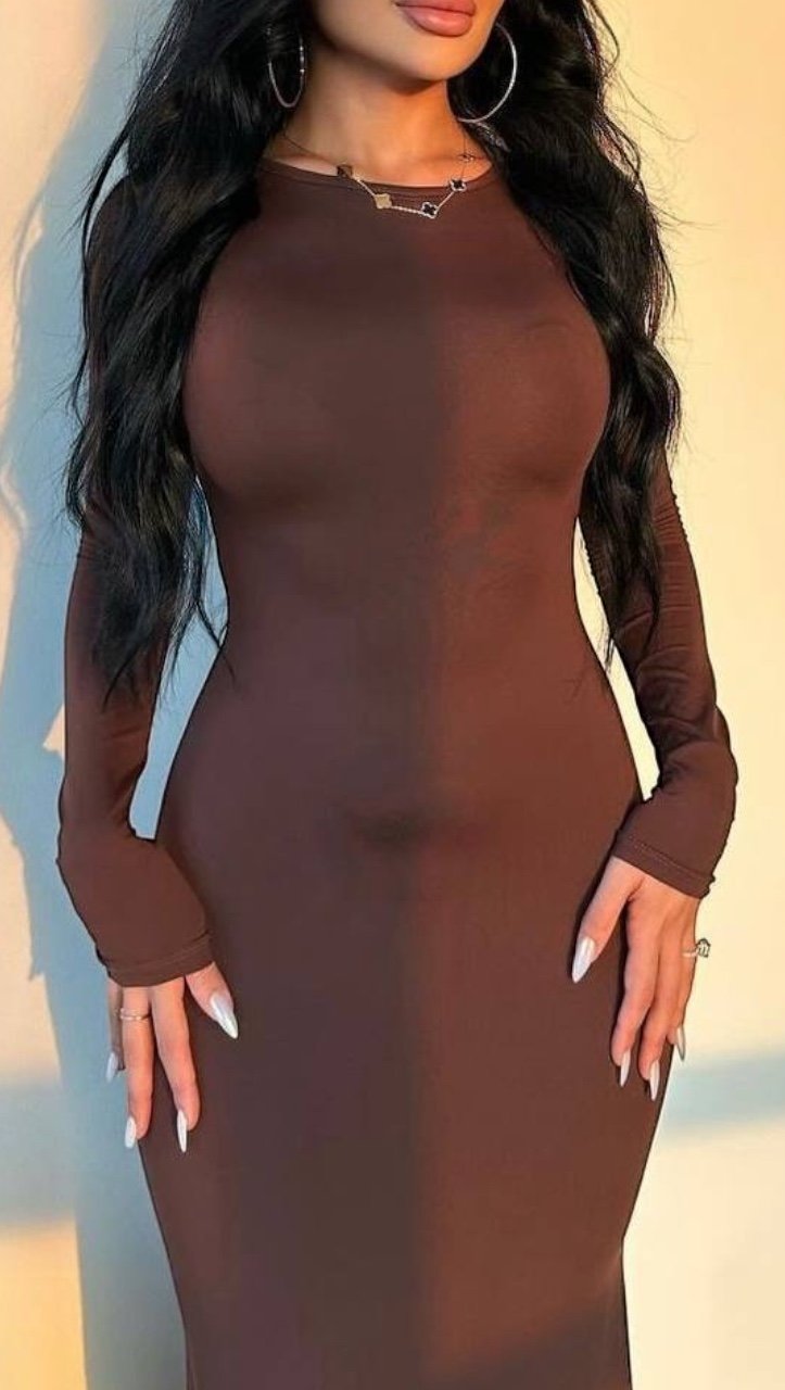 Καφέ μάξι φόρεμα με μακρύ μανίκι, ιδανικό για κομψές και άνετες εμφανίσεις σε κάθε περίσταση.