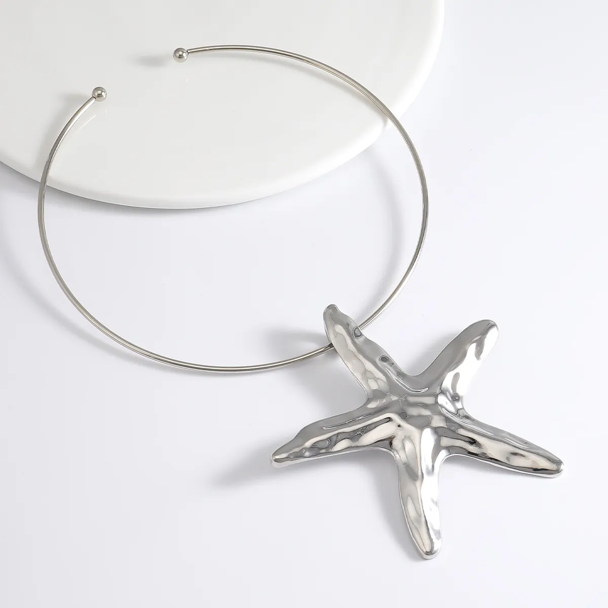 Ασημένιο κολιέ με σταθερή αλυσίδα και μεγάλο μενταγιόν αστέρι 7 εκ. Ένα λαμπερό και διαχρονικό κόσμημα που προσθέτει κομψότητα σε κάθε εμφάνιση.