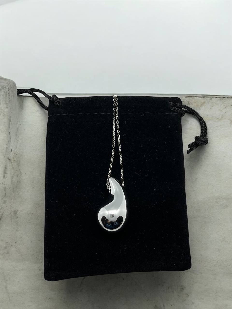 Κολιέ με ασημί σταγόνα, προσφέρει μία κομψή και μοντέρνα εμφάνιση για κάθε περίσταση