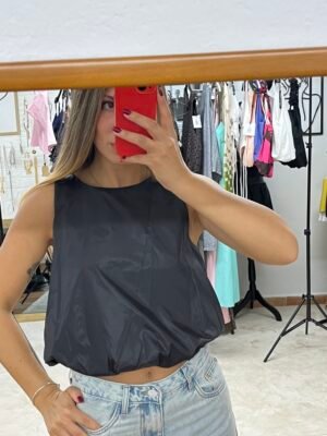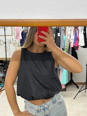 Urban Gloss – Μαύρο Crop Top με Εφέ Σατινέ & Λάστιχο